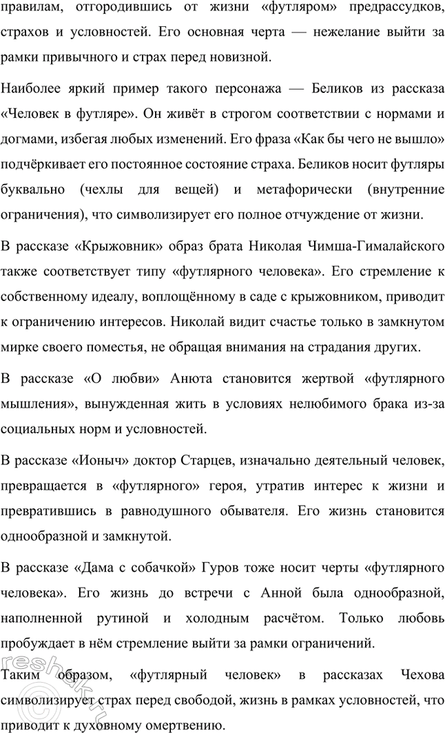 9. Кто такой «футлярный человек» в понимании А. П. Чехова? Охарактеризуйте тип «футлярного человека» на примере персонажей рассказов «Человек в футляре». «Крыжовник», «О любви», «Ионыч», «Дама с собачкой».