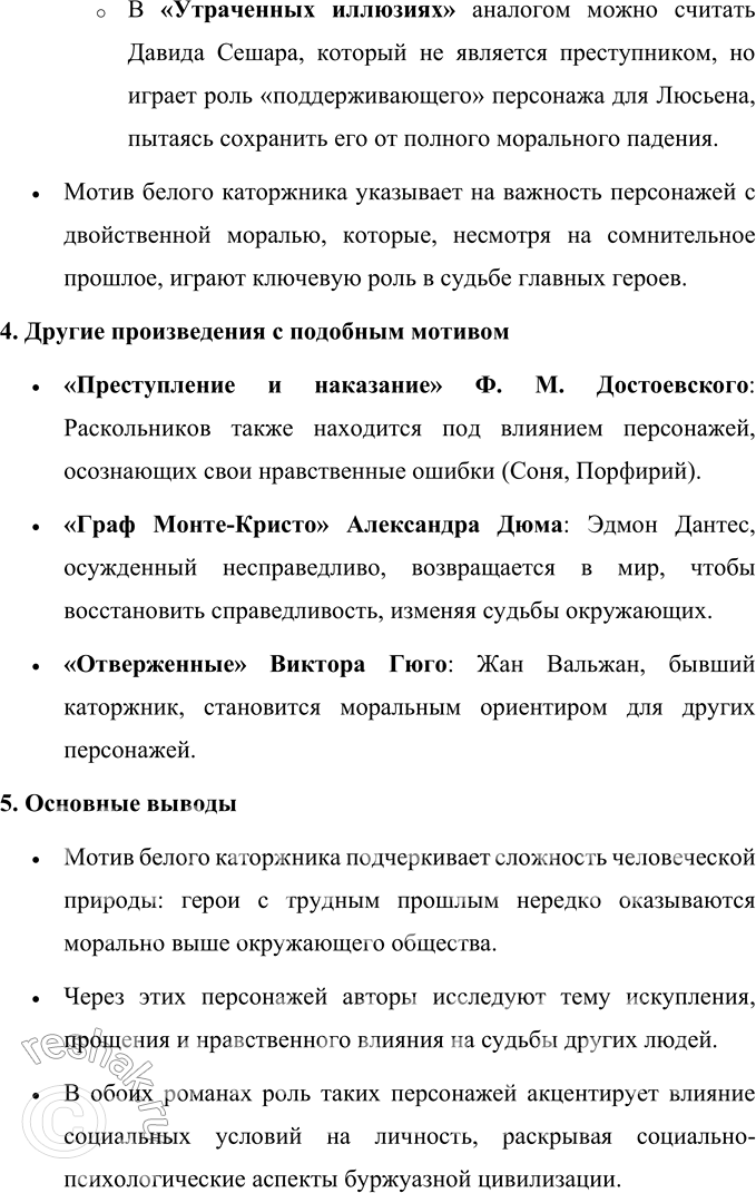 • Мотив белого каторжника указывает на важность персонажей с двойственной моралью, которые, несмотря на сомнительное прошлое, играют ключевую роль в судьбе главных героев.