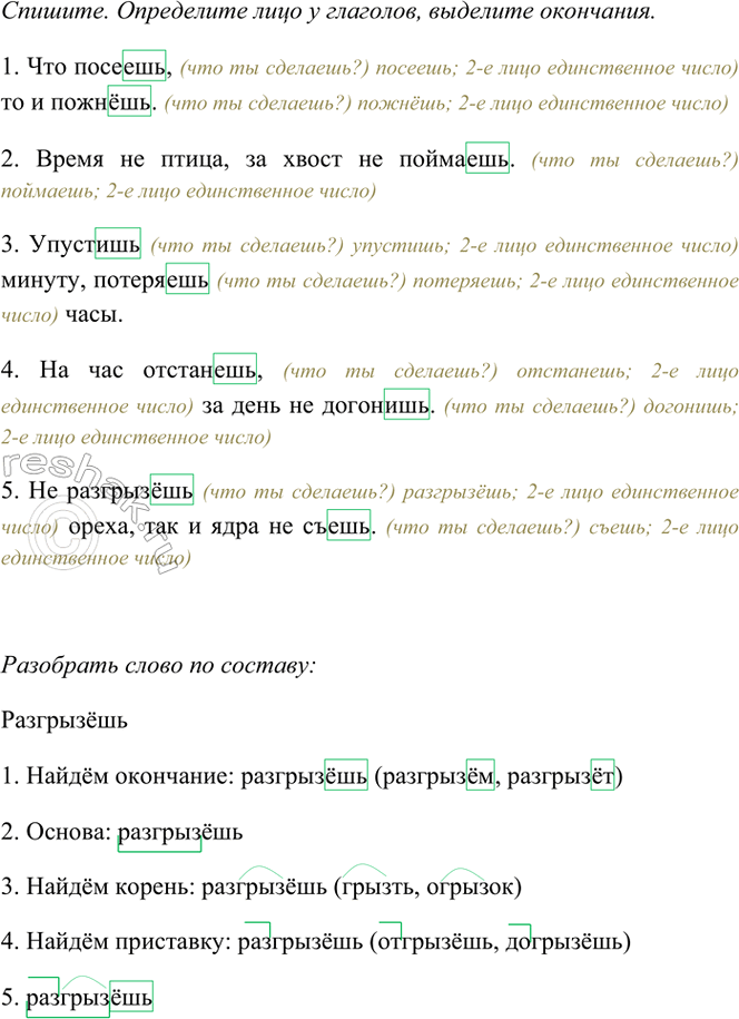 Спишите. Определите лицо у глаголов, выделите окончания. Проверьте друг друга.