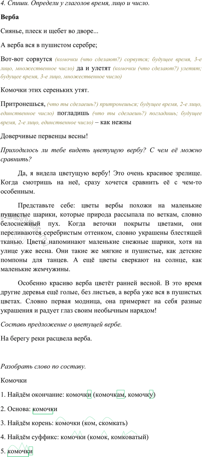 4. Спиши. Определи у глаголов время, лицо и число.