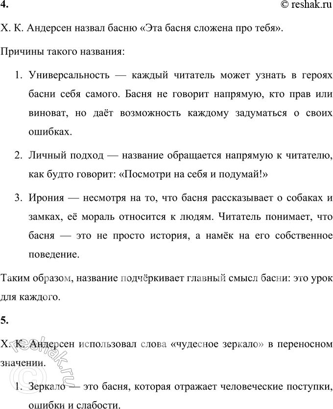 4. Как X. К. Андерсен назвал басню? Почему он так её озаглавил?