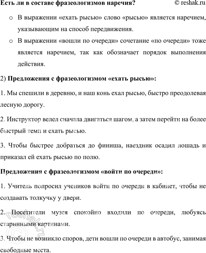 o В выражении «ехать рысью» слово «рысью» является наречием, указывающим на способ передвижения.