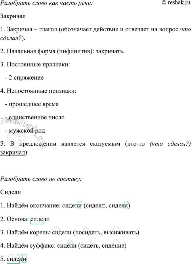 1. Закричал – глагол (обозначает действие и отвечает на вопрос что сделал?).