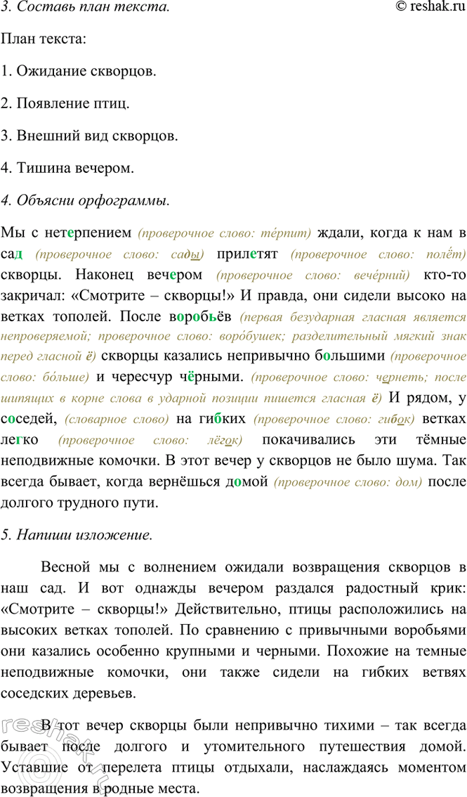 Определи, в каких частях слова какие буквы пропущены. Спиши текст, вставляя пропущенные буквы. Подготовься к изложению. Напиши.