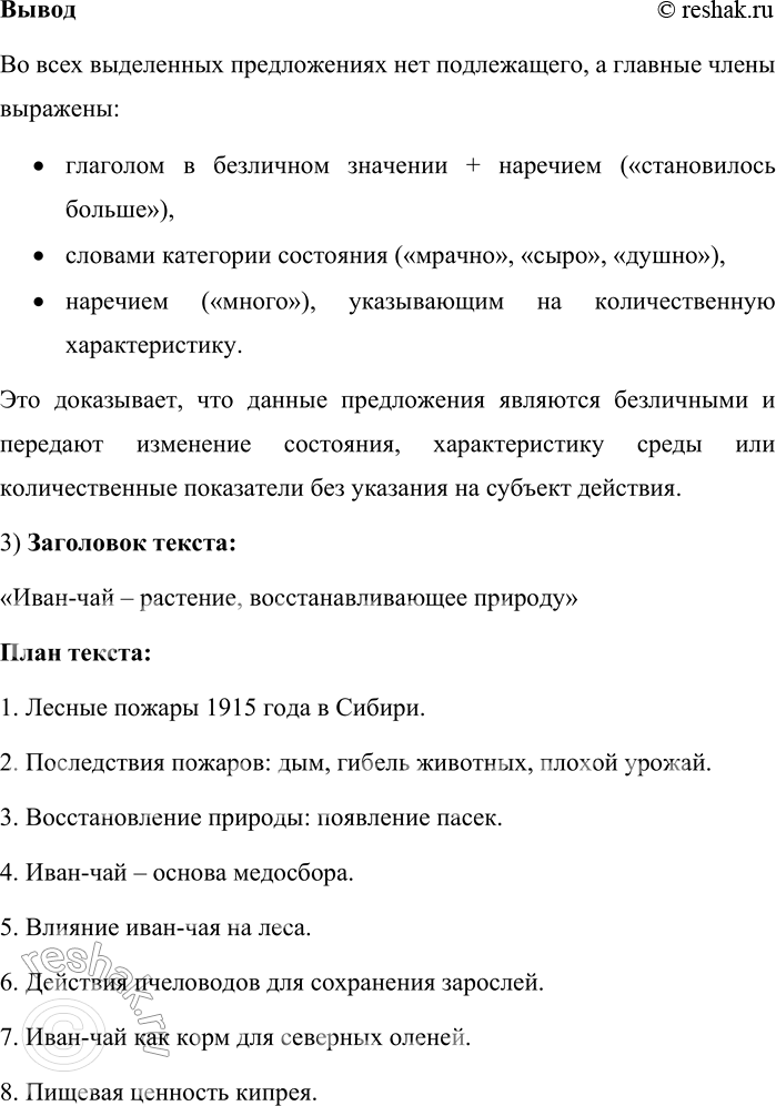 2. Докажите, что выделенные предложения являются безличными. Слова каких частей речи выполняют роль главного члена в этих предложениях? Аргументируйте свою точку зрения.