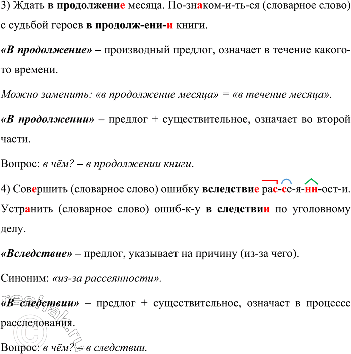 3) Ждать в продолжение месяца. По-знаком-и-ть-ся (словарное слово) с судьбой героев в продолж-ени-и книги.