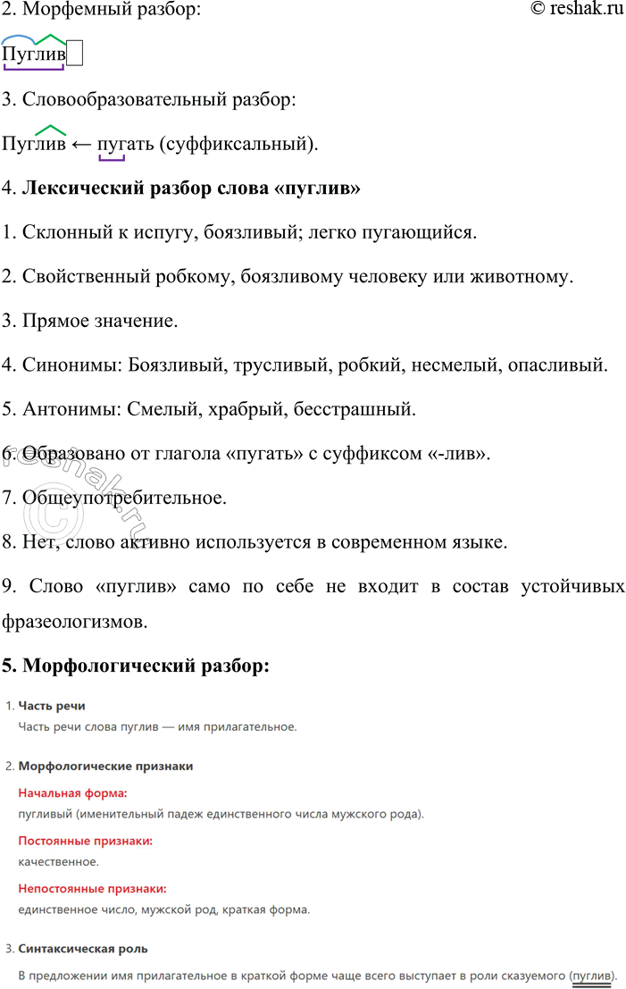6. Образовано от глагола «пугать» с суффиксом «-лив».