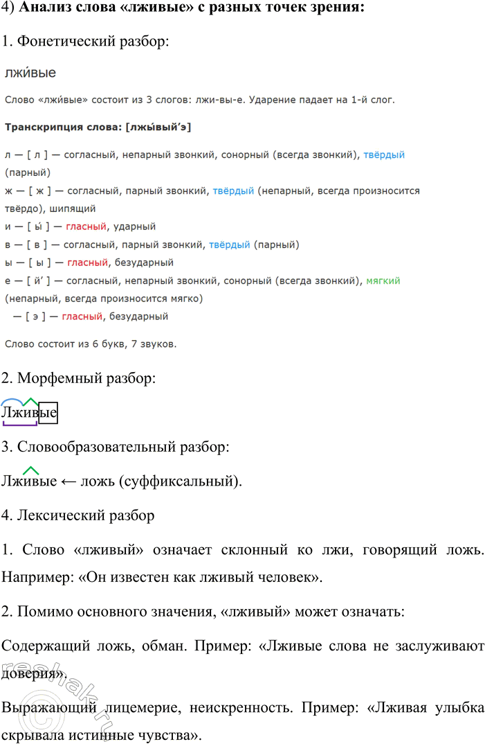 Анализ слова «лживые» с разных точек зрения: