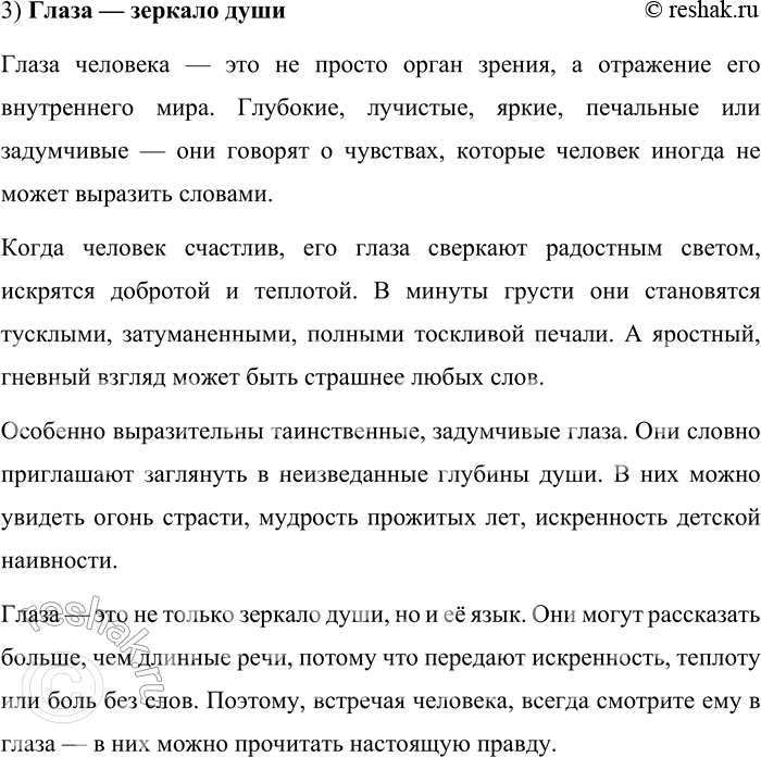 1. Тема текста: значение глаз в выражении эмоций, характера и намерений человека.