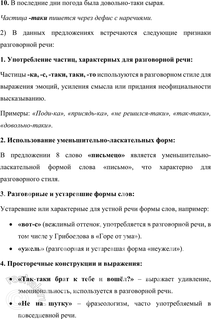 В предложении 8 слово «письмецо» является уменьшительно-ласкательной формой слова «письмо», что характерно для разговорного стиля.