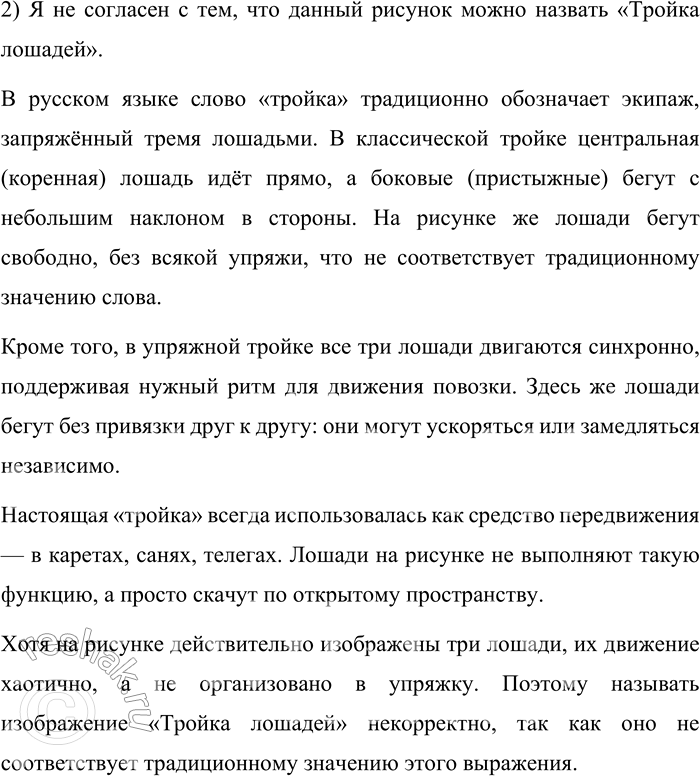 2. Поразмышляйте над тем, можно ли данный рисунок назвать «Тройка лошадей». Приведите аргументы, подтверждающие вашу точку зрения.