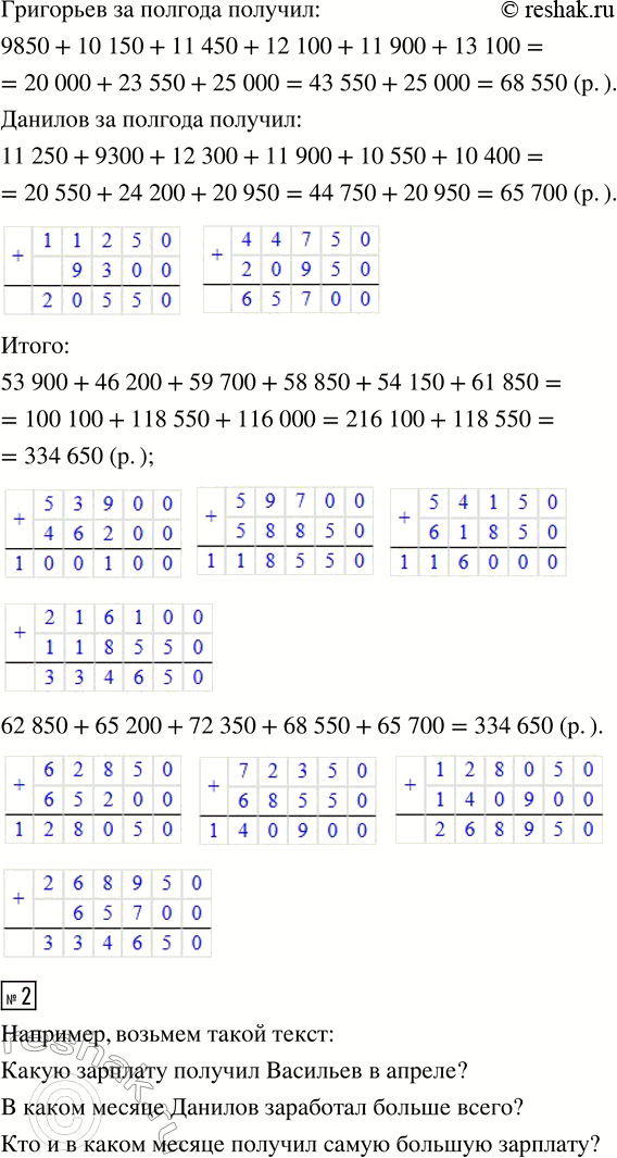 1. В таблице представлена ведомость учёта зарплаты (в рублях), полученной рабочими одной бригады в течение шести месяцев.
