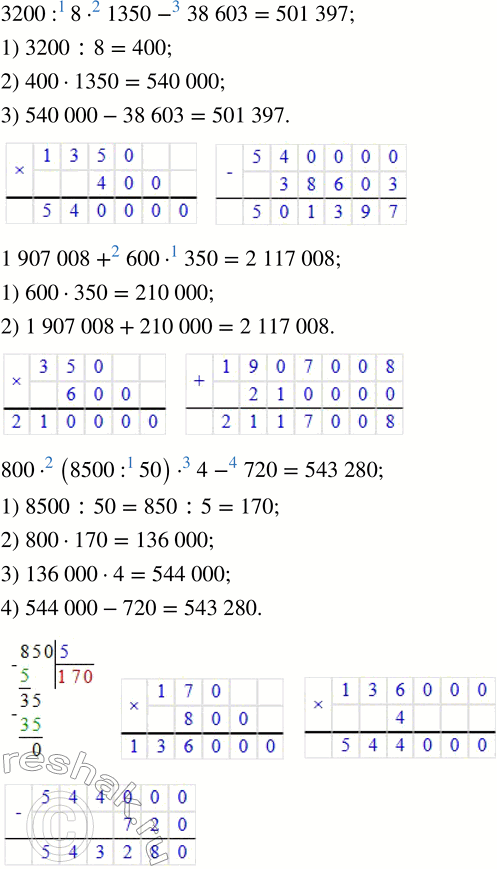 500 380 · 6 65 400 : 300 800 · (8500 : 50) · 4 - 720