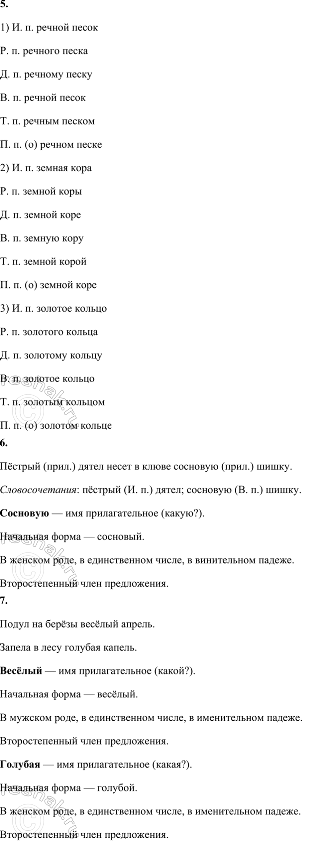 5. Прочитайте. Устно просклоняйте (измените по падежам) любое имя прилагательное вместе с именем существительным.