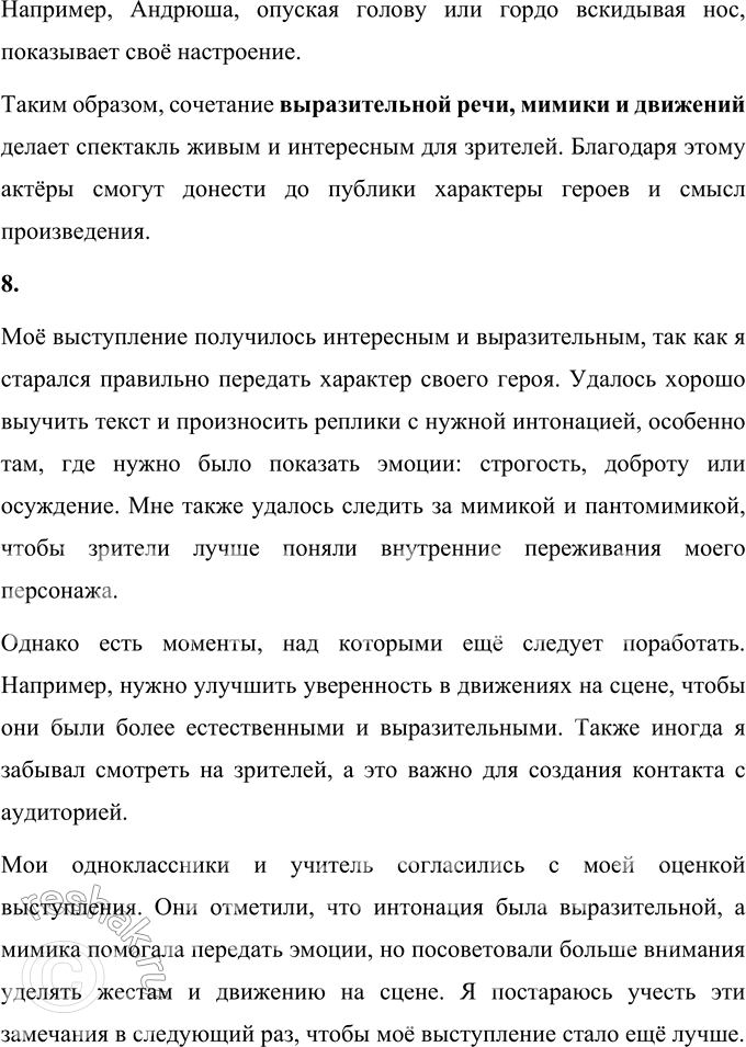 8. Оцени своё выступление: что удалось, над чем ещё следует поработать?