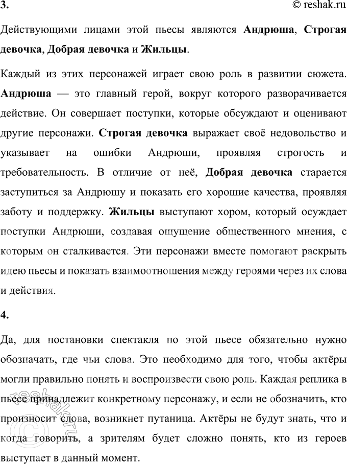 4. Нужно ли для постановки спектакля по этой пьесе обозначать, где чьи слова? Почему?