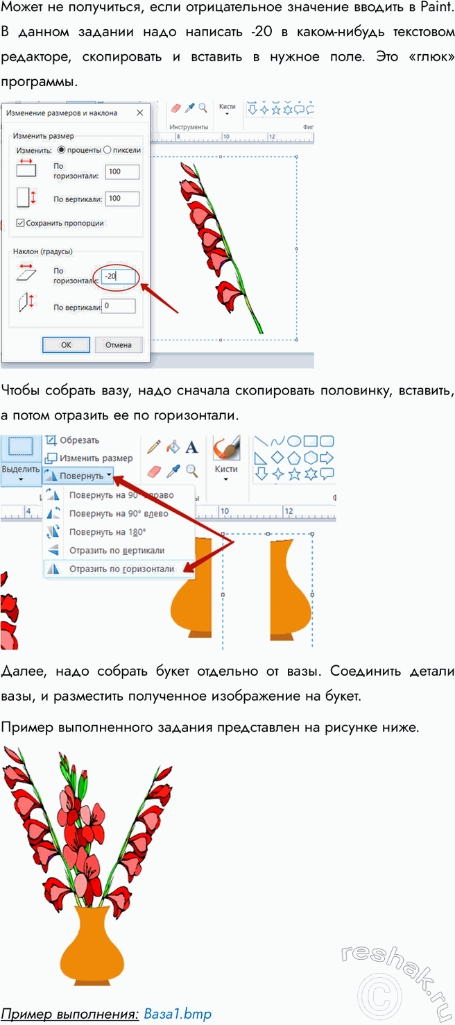 Может не получиться, если отрицательное значение вводить в Paint. В данном задании надо написать -20 в каком-нибудь текстовом редакторе, скопировать и вставить в нужное поле. Это «глюк» программы.