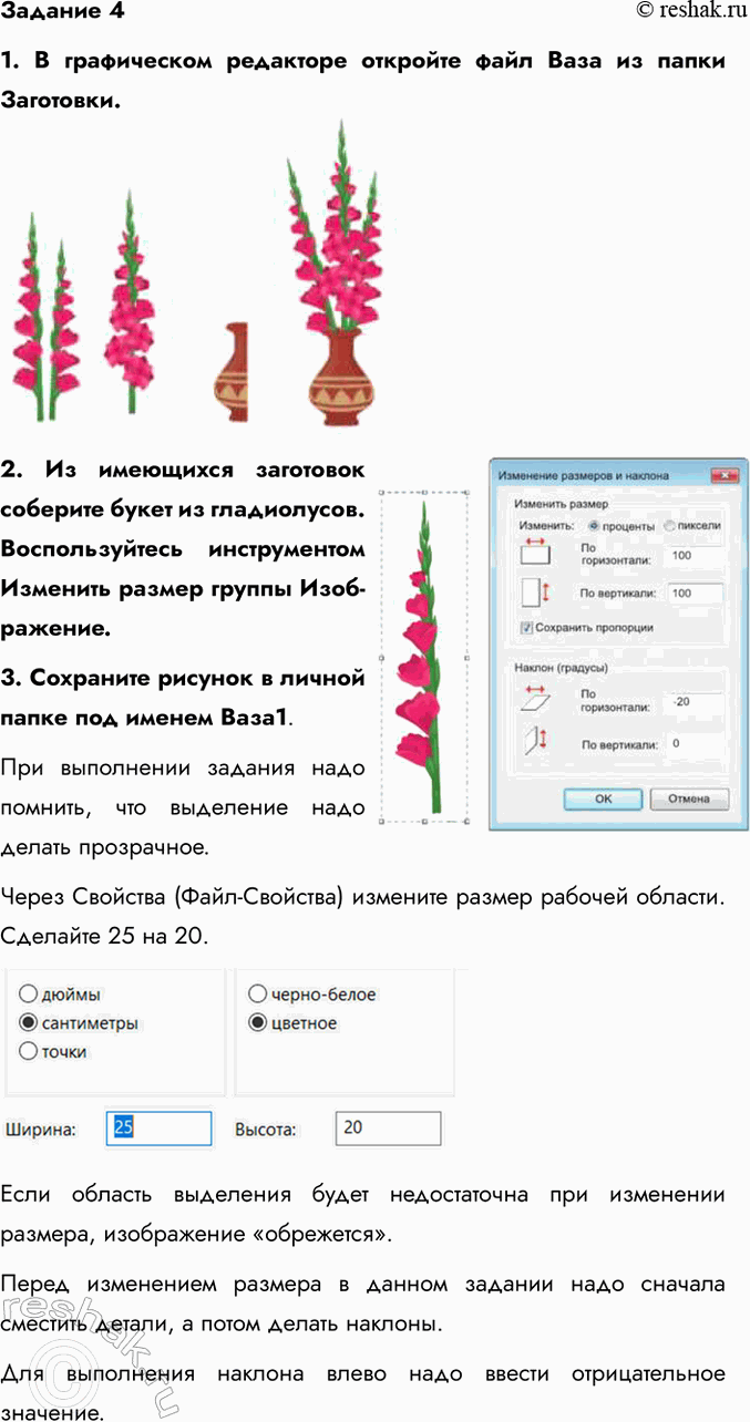 Далее по описанию. Поворот фигуры и изменение наклонов смотрите в предыдущем задании. Не забудьте, Прозрачное выделение!