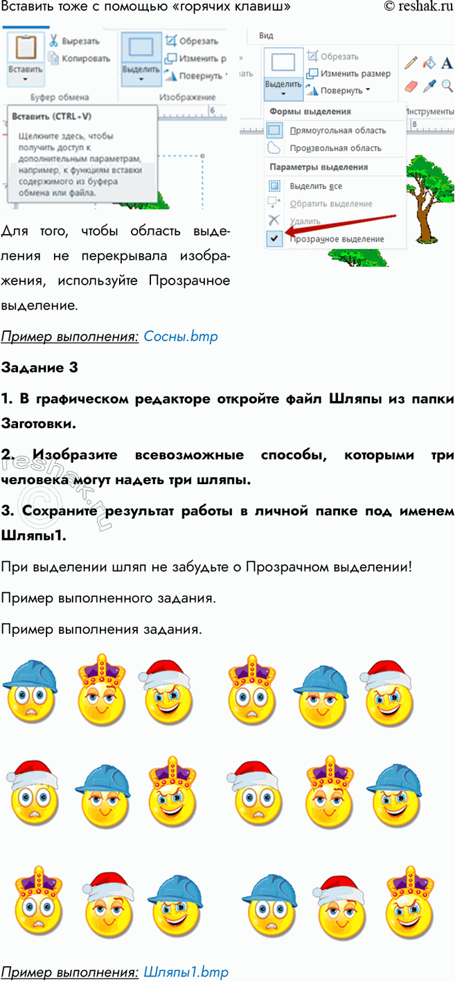 При выполнении задания надо помнить, что выделение надо делать прозрачное.
