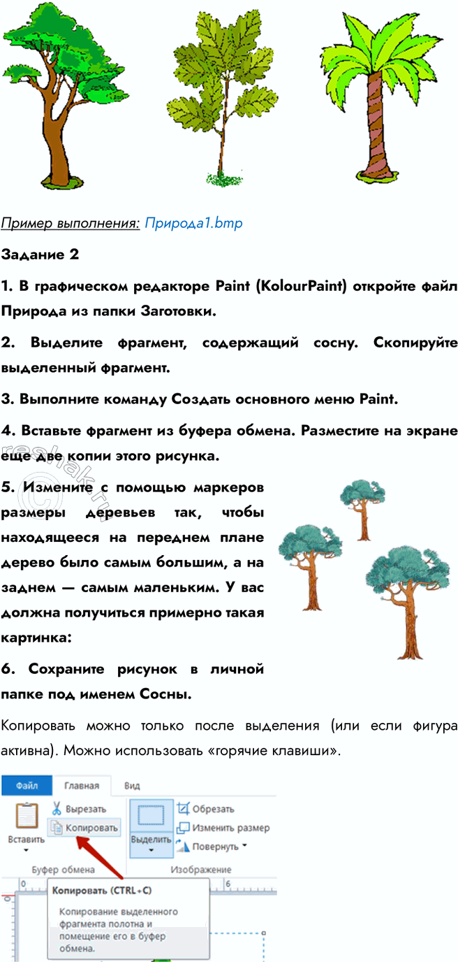 2. Выделите фрагмент, содержащий сосну. Скопируйте выделенный фрагмент.
