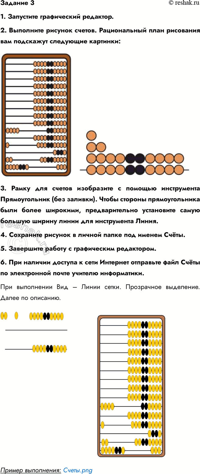 6. При наличии доступа к сети Интернет отправьте файл Счёты по электронной почте учителю информатики.