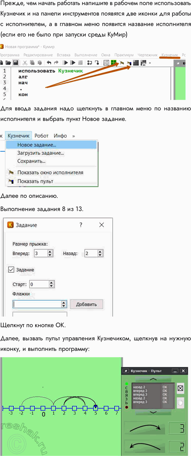 1. В среде программирования КуМир подключите исполнителя Кузнечик.