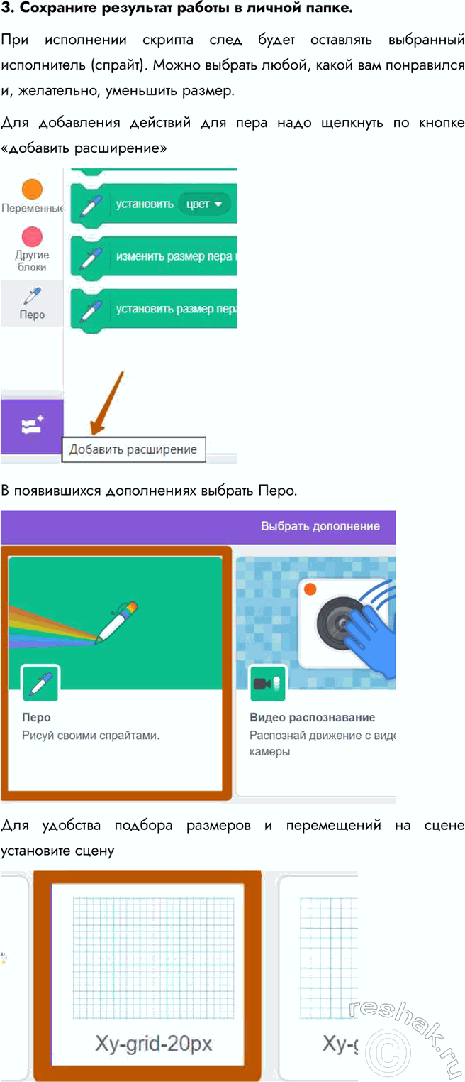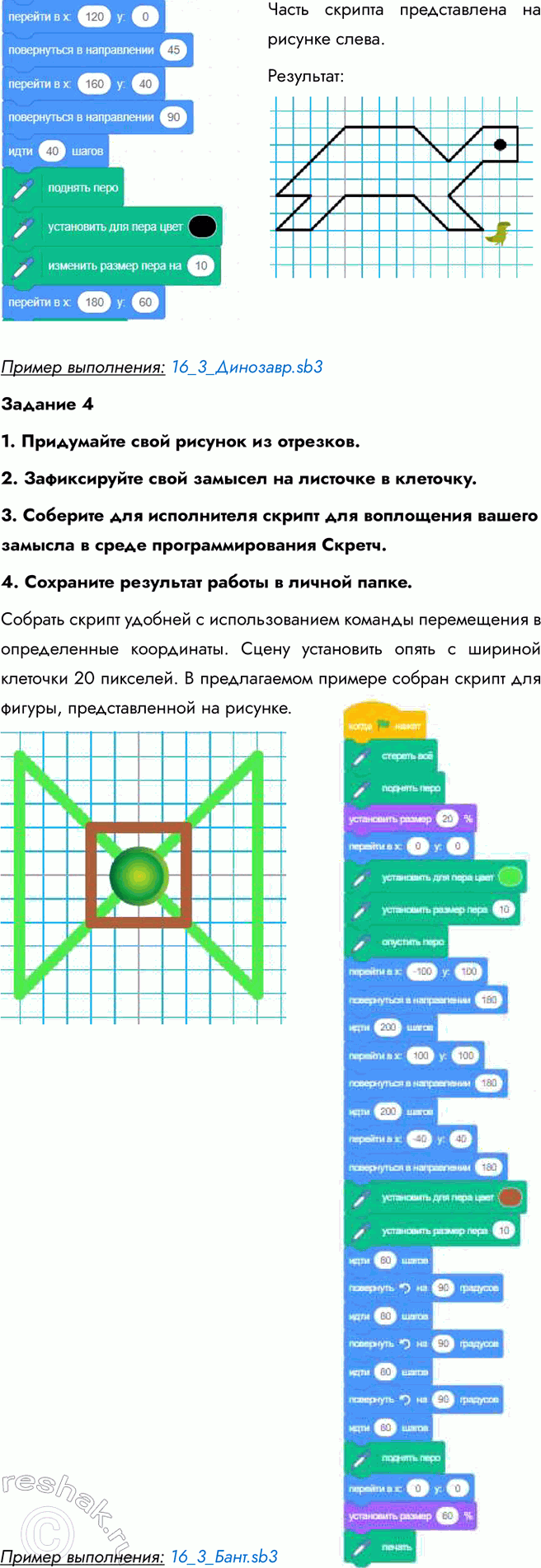 3. Соберите для исполнителя скрипт для воплощения вашего замысла в среде программирования Скретч.