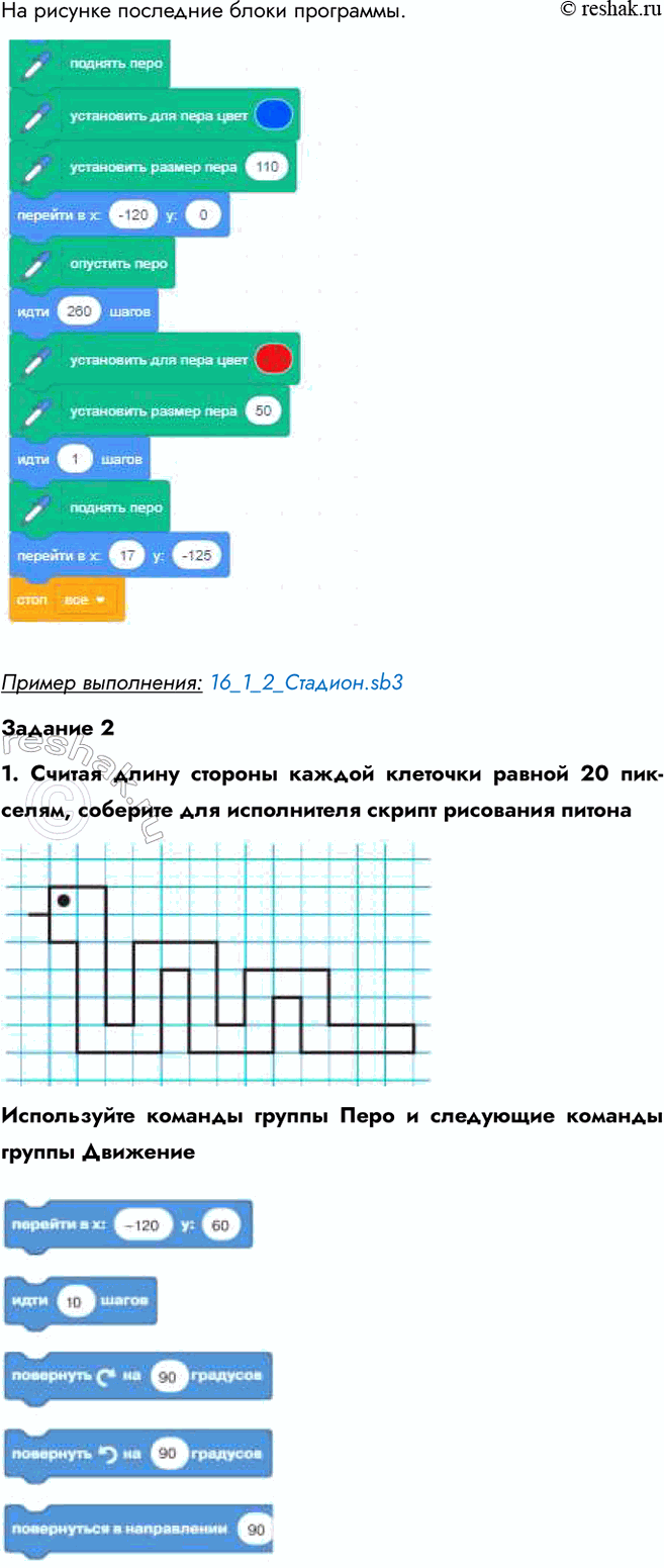 1. Считая длину стороны каждой клеточки равной 20 пик-селям, соберите для исполнителя скрипт рисования питона