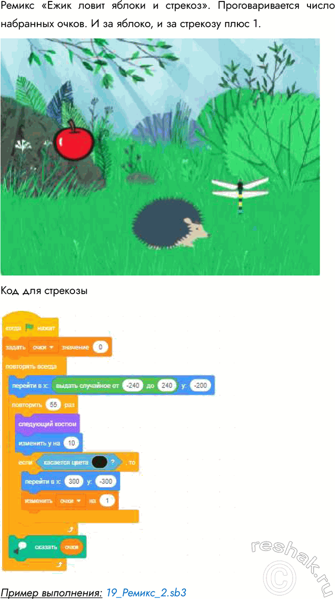 Ремикс «Ежик ловит яблоки и стрекоз». Проговаривается число набранных очков. И за яблоко, и за стрекозу плюс 1.