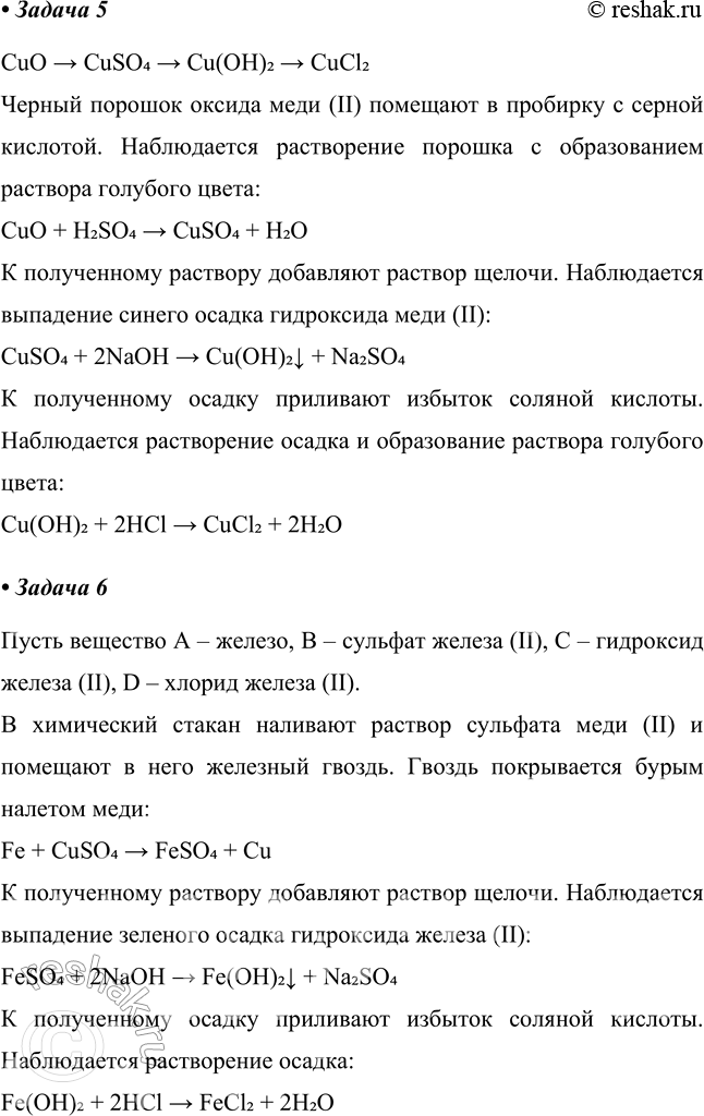 CuO — > CuSO4 - > Сu(ОН)2 — СuСl2