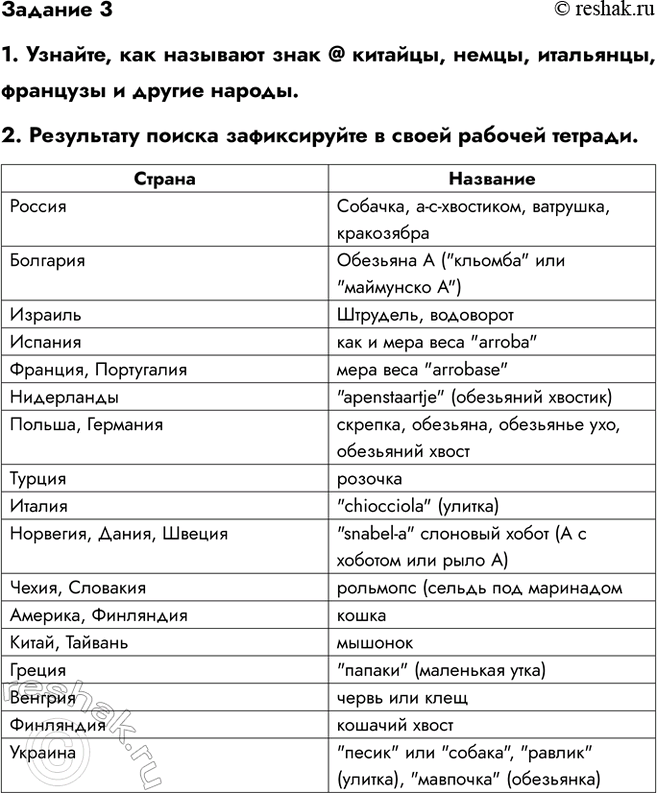 1. Узнайте, как называют знак @ китайцы, немцы, итальянцы, французы и другие народы.