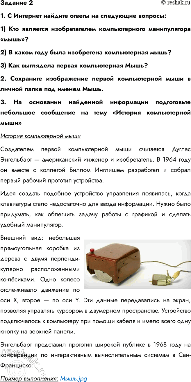 3. На основании найденной информации подготовьте небольшое сообщение на тему «История компьютерной мыши»