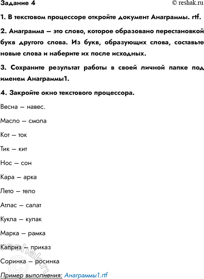 1. В текстовом процессоре откройте документ Анаграммы. rtf.