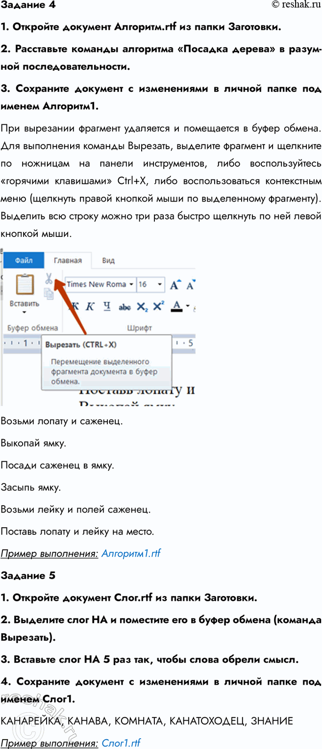 1. Откройте документ Алгоритм.rtf из папки Заготовки.
