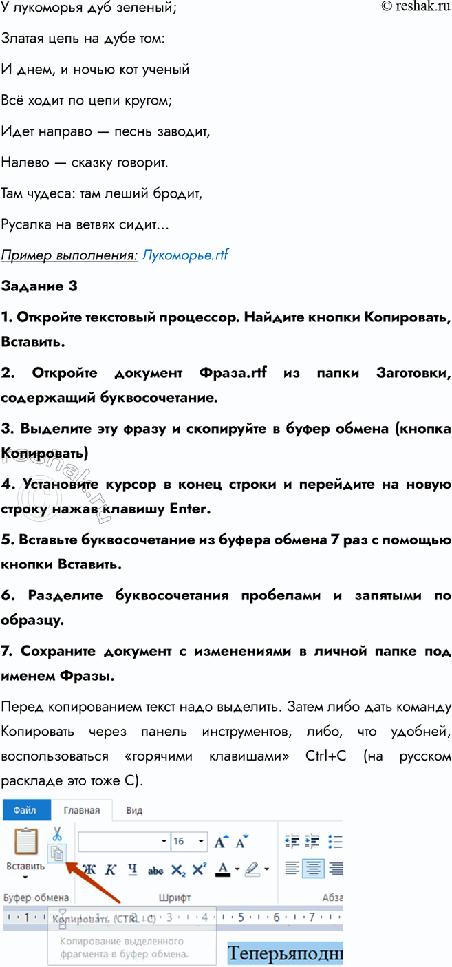 1. Откройте документ Лукоморье.rtf из папки Заготовки.
