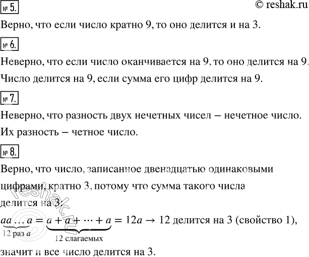 5. Если число кратно девяти, то оно делится без остатка на три.