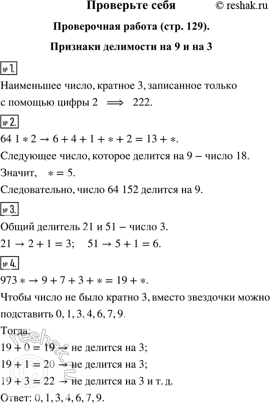 4. Какую цифру можно подставить вместо звёздочки в запись числа 973*, чтобы это число не было кратно трём?