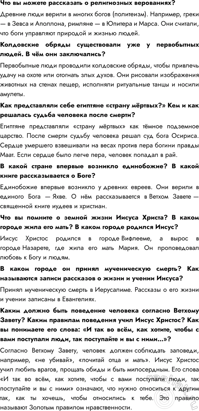 Древние люди верили в многих богов (политеизм). Например, греки — в Зевса и Аполлона, римляне — в Юпитера и Марса. Они считали, что боги управляют природой и жизнью людей.