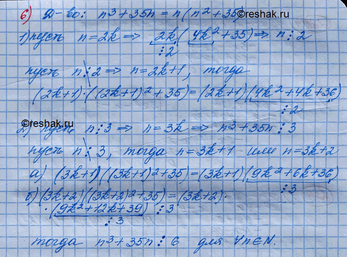 6. Доказать, что при любом n принадлежит N число а = n3 + 35n делится на 6.